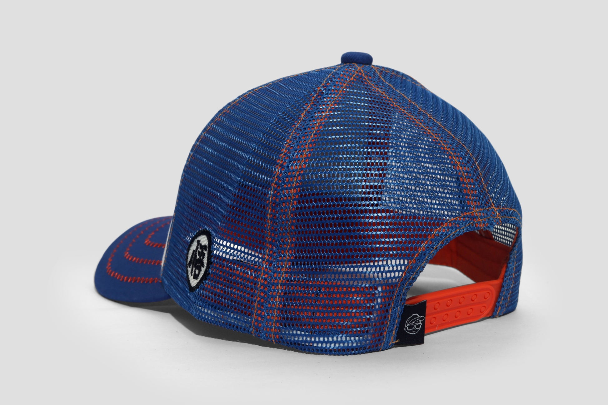 Featuring a bold white front, a blue cotton brim, and breathable mesh back, this cap is designed for fans who love to stand out.